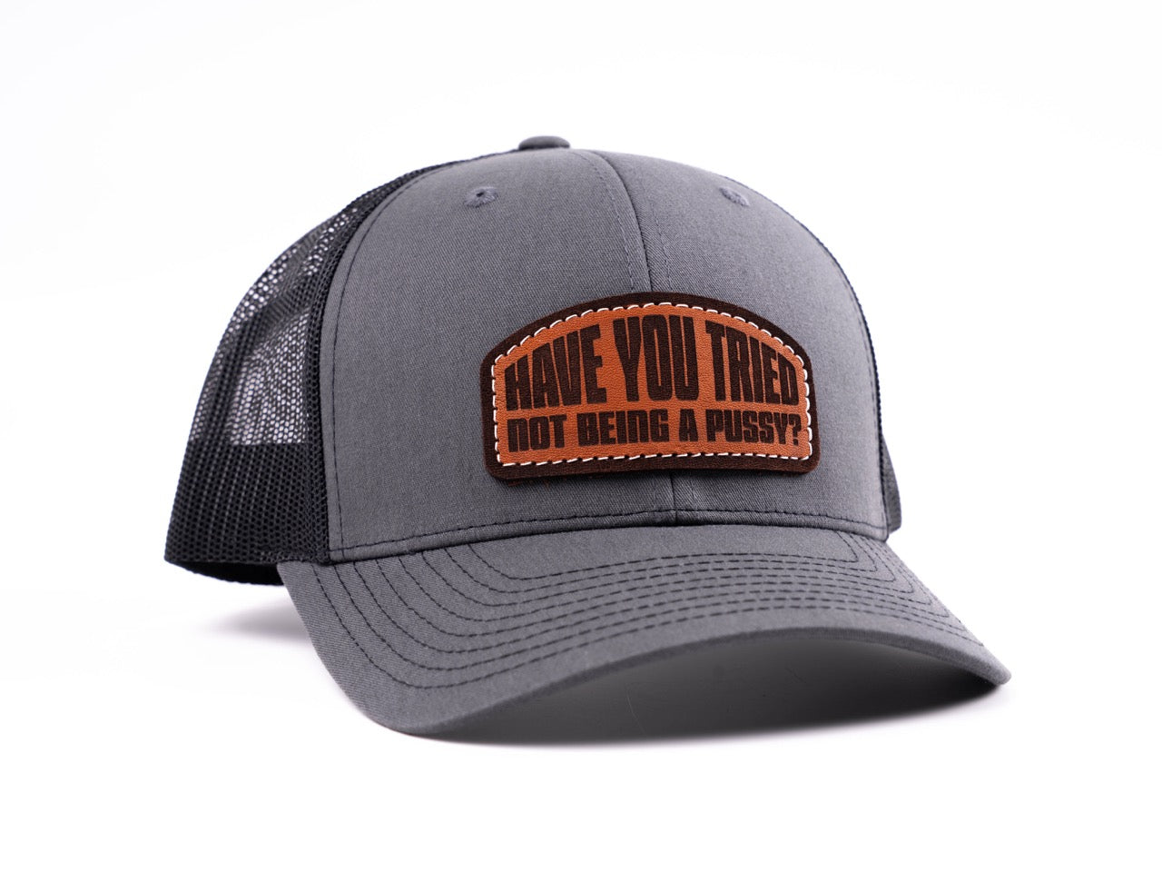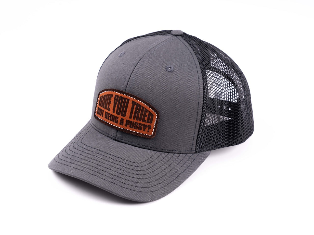 For the ones who don’t make excuses. The SPE “Have You Tried Not Being a Pussy?” hat says what everyone else is thinking; plain and simple. Built on the classic Richardson 112 trucker, it’s got the perfect structured fit, breathable mesh back, and an adjustable snap for all-day comfort. The laser-engraved leather patch adds that rugged, no-BS finish that fits right in at the track, in the shop, or anywhere attitude matters.